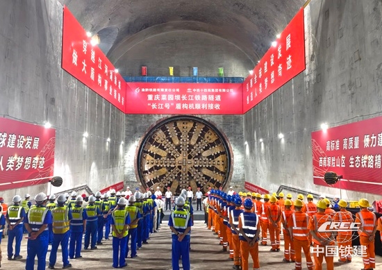 據了解,重慶菜園壩長江鐵路隧道是國內首個洞內完成盾構機組裝、始發、接收、拆解全流程作業的高鐵大直徑盾構項目。項目團隊通過自主摸索與技術創新,首創“上部拱蓋復合式襯砌+下部邊墻錨桿擋墻疊合二襯結構”的洞室結構設計,攻克了3500噸級大直徑盾構機在洞內精準組裝、始發等難題,填補了行業技術空白?!伴L江號”此次也在擴大洞室內接收,貫通后還將緊張推進盾構機洞內拆解等任務。