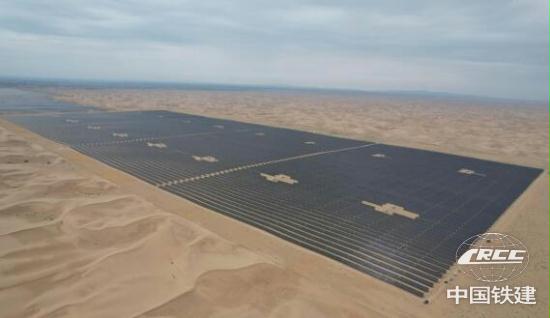 項目建設中,建設者將太陽能開發與沙漠治理有機結合,順利完成3000多噸光伏組件安裝,成功進入并網調試階段。建成投用后,預計治理沙漠面積3000余畝,實現年發電量19242.72萬千瓦時,筑就“板上產綠電,板間長綠草,板下變綠洲”的綠色屏障。
