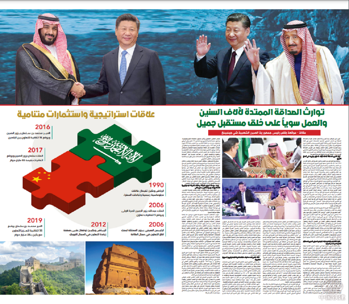 2022年12月8日,在抵達(dá)利雅得出席首屆中國—阿拉伯國家峰會、中國—海灣阿拉伯國家合作委員會峰會并對沙特進(jìn)行國事訪問之際,國家主席習(xí)近平在沙特《利雅得報》發(fā)表題為《傳承千年友好,共創(chuàng)美好未來》的署名文章。
